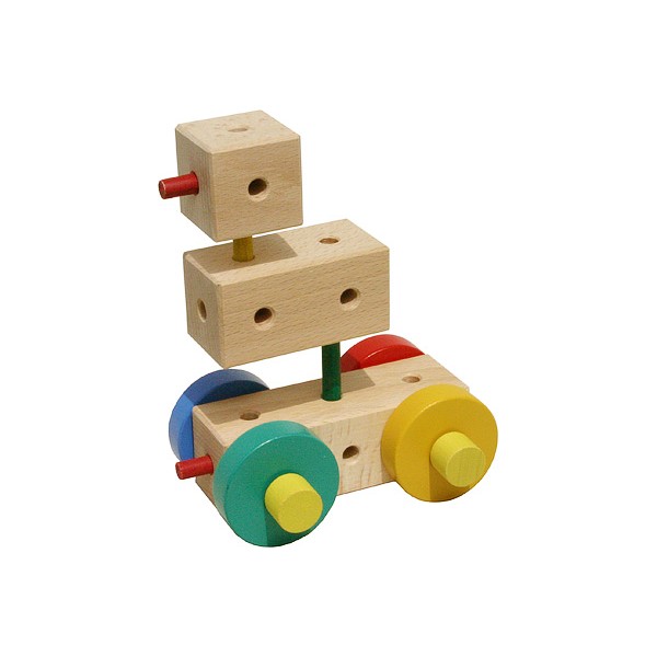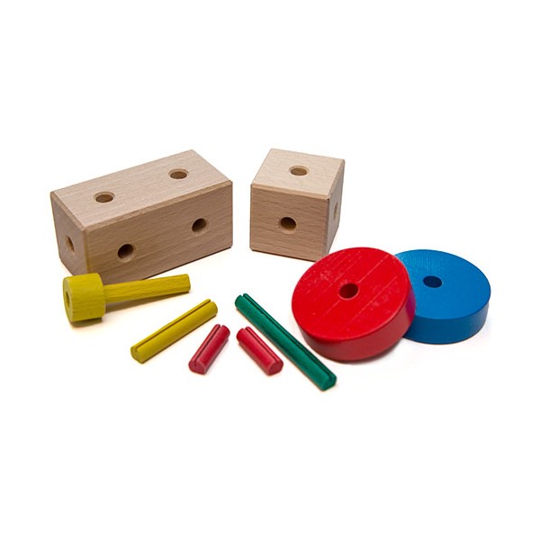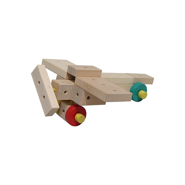 This Ki-XL set contains 350 pieces, including three sets of tools (hammer, pliers and wedge) and building instructions. There are enough blocks for a couple of children.